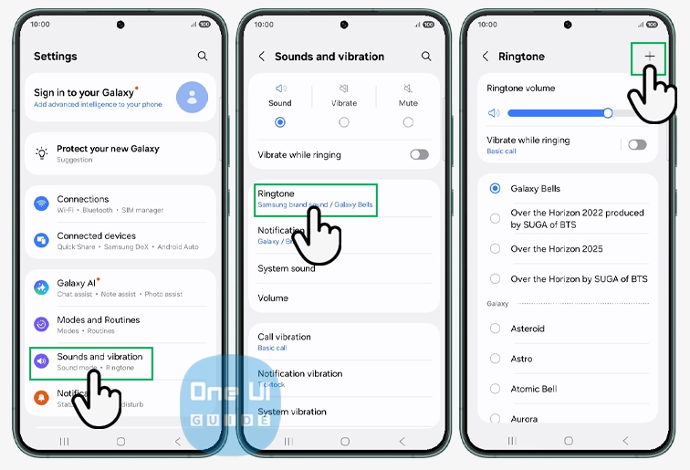- Tap the “+” (plus) icon, often located at the top right corner of the ringtone list. This prompts you to add a new sound.