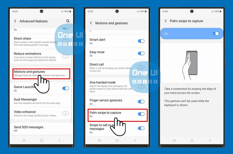To enable this feature, go to Settings > Advanced features > Motions and gestures > Palm swipe to capture.
